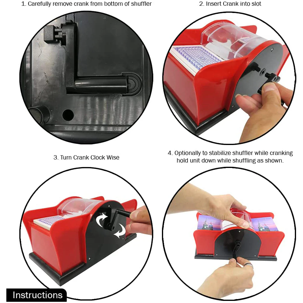 These are the best shufflers on the market! Automatic shufflers require batteries, break, and jam often. This hand crank version makes shuffling a breeze and will last a lot longer than the automatic shufflers. You can even shuffle one or two decks at once!